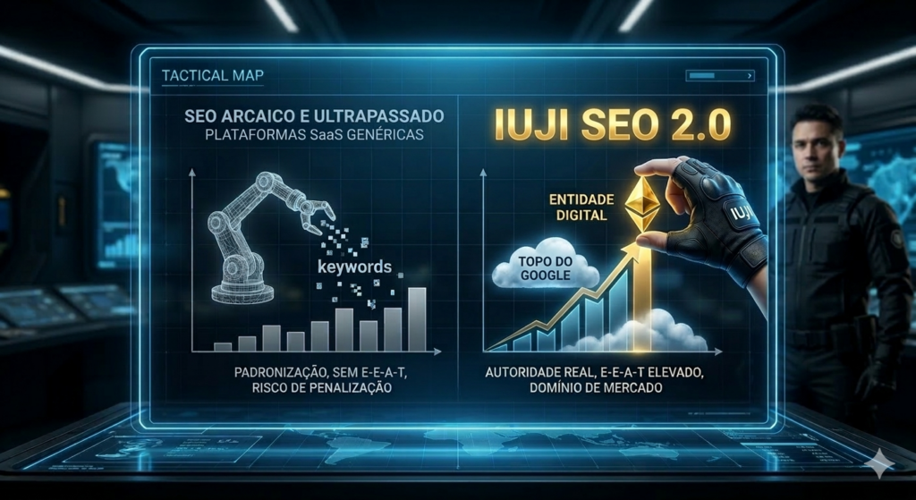 O SEO automático morreu. 🚨 Saiba por que as plataformas SaaS falharam e como o IUJI SEO 2.0 está dominando o novo algoritmo do Google. Não deixe sua empresa ficar para trás com métodos ultrapassados. Leia o dossiê completo.