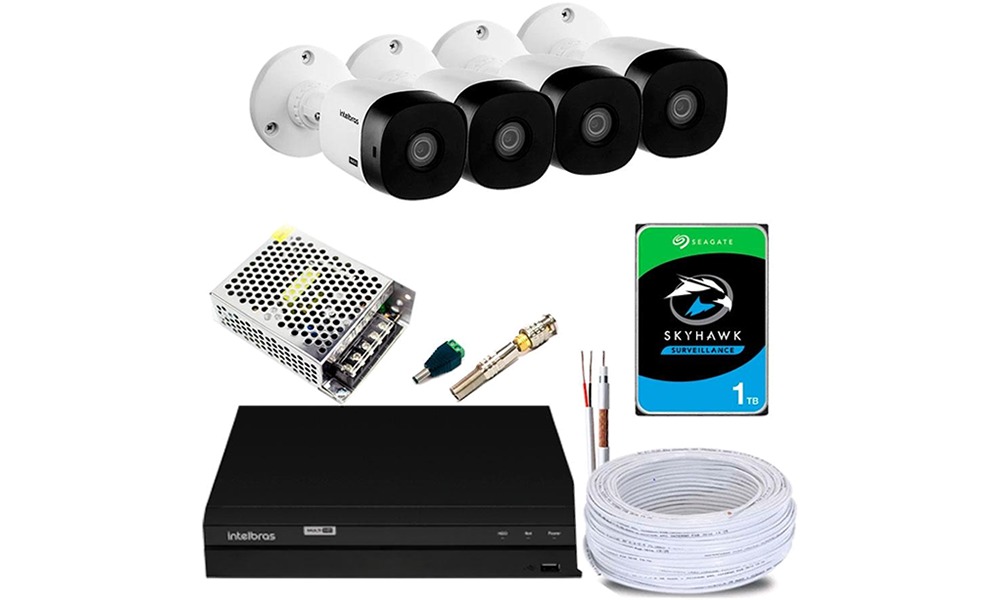 Kit completo CFTV 4 Câmeras Intelbras VHL 1120B + Dvr 4 Canais MHDX 1204 + HD 1Tb Skyhawk
